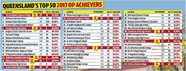 2018 - Whitsunday Anglican School ranked 18th in Queensland's top 50 Schools for 2017 OP Results